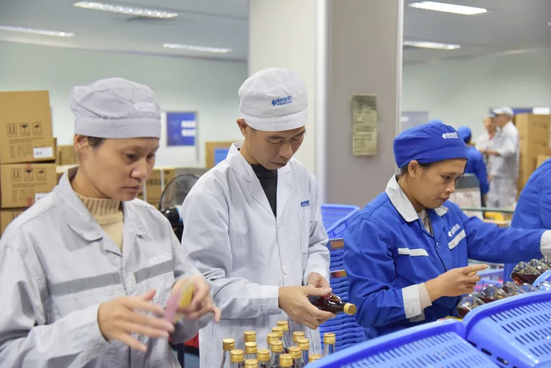 7:50配料開始,8:50灌裝間機(jī)器聲響起,9:00洗瓶間人員已經(jīng)忙碌而有條不紊工作起來,待前端各工序正常運(yùn)行后,他又往包裝區(qū)域巡場(chǎng),“阿嬌,這張產(chǎn)品合格證印得不太清楚,換一張吧。”“兩個(gè)批號(hào)不一樣的,阿炳你搬箱時(shí)注意一下?!薄靶氯顺鮼碚У剑瑢?duì)于包裝不熟手很正常,產(chǎn)品需要多抽檢,新人亦要多提醒?!倍嗄甑墓ぷ鹘?jīng)驗(yàn),讓他在巡檢中準(zhǔn)確快速地根據(jù)當(dāng)前狀態(tài)捕捉到質(zhì)量控制關(guān)鍵點(diǎn)。