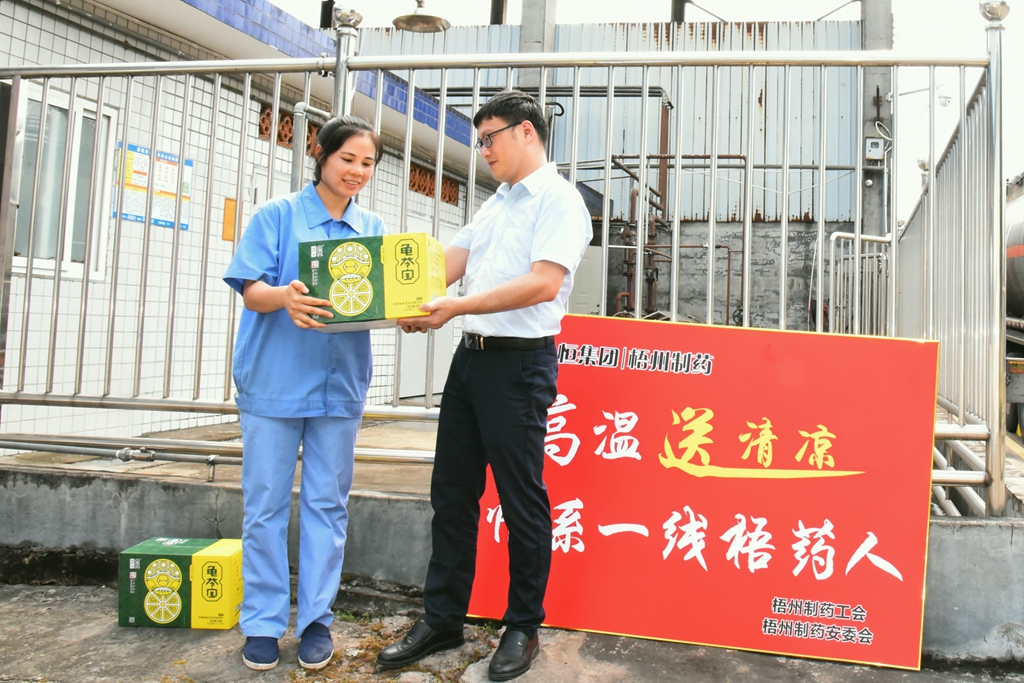 炎炎夏日送清涼,絲絲關愛入心田。一份關愛、一份叮嚀、一份囑托,切切實實把防暑降溫和安全生產落實到一線每一名職工的心中。此次“送清涼”活動的開展體現了梧州制藥重視員工安全、關心員工健康的工作理念,更是落實“我為職工辦實事”的具體實踐,讓廣大一線職工真切感受到“娘家人”就在身邊。