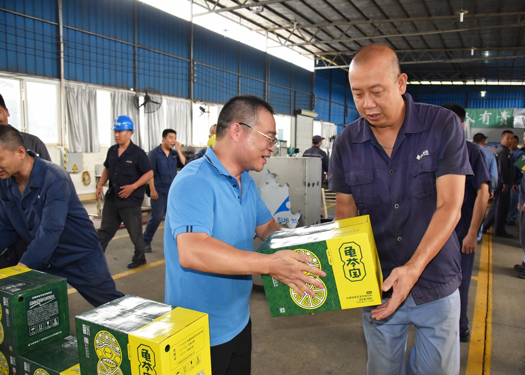 “天氣這么熱,大家辛苦了!”“注意自我保護,記得多喝水!”“崗位都備有防中暑藥品,主任們要留意職工的身體狀態(tài), 合理安排休息?!苯眨嘀葜扑庮I導班子分別帶上清涼飲品,到各車間慰問奮戰(zhàn)在高溫崗位的職工,聲聲叮嚀,讓職工們在盛夏中感受到了陣陣清涼。