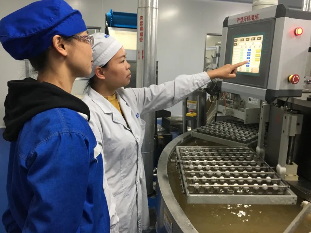 面對這個問題,雷潔萍和團隊加快技術改造創(chuàng)新,引進兩條大蜜丸全自動扣殼、全自動蘸蠟設備聯(lián)動生產線。反復調試入殼機扣殼的吻合度與力度,最終實現(xiàn)機械設備間的聯(lián)動生產,操作人員由100余人壓降到20余人,日產量翻了10倍,大幅提高產能及生產效率,縮短了生產周期。