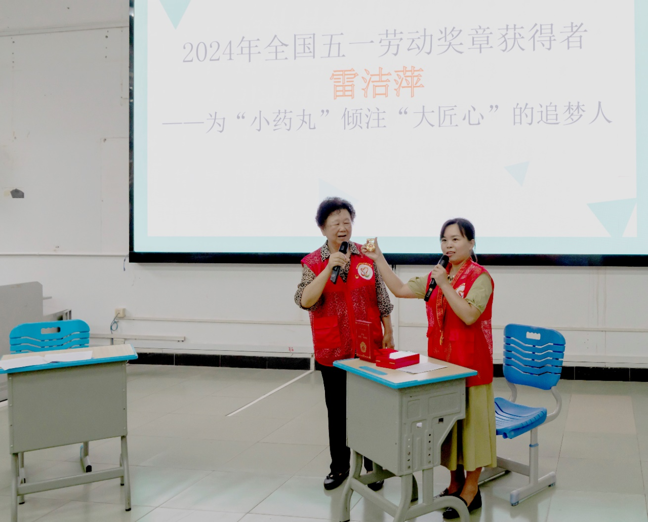 全國五一勞動獎章、“廣西工匠”獲得者、自治區(qū)級非物質文化遺產(chǎn)“中華跌打丸”制作技藝第五代傳承人雷潔萍結合學生時代的求學故事、工作之后的奮斗歷程,用樸實真摯的語言,以自己二十多年的成長軌跡為脈絡,向在座師生講述了自己匠心筑夢的心路歷程,詮釋了新時代勞模精神、勞動精神和工匠精神的內涵與要求,引導廣大學生成為有理想、有信念、有擔當?shù)男聲r代好少年。