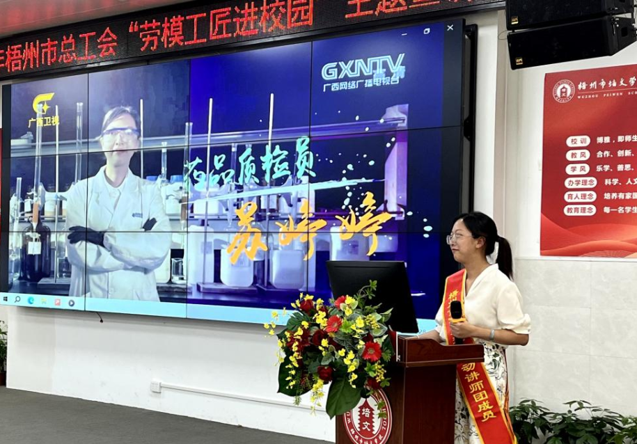 本次由梧州市總工會(huì)、梧州市教育局主辦的“勞模工匠進(jìn)校園”主題宣講,為勞模和學(xué)子之間搭建了一座近距離溝通的橋梁,讓廣大學(xué)子們通過傾聽工匠故事,感受工匠精神,激勵(lì)青年一代奮發(fā)圖強(qiáng),向勞模學(xué)習(xí)、向工匠看齊。宣講會(huì)上,“廣西五一獎(jiǎng)?wù)隆薄皬V西工匠”獲得者蘇婷婷圍繞“要有積極向上的人生態(tài)度、要有持之以恒的學(xué)習(xí)精神、要有不畏艱辛的刻苦干勁”三個(gè)方面向在場(chǎng)師生們分享自己從學(xué)生生涯到工作時(shí)期二十多年的成長歷程和故事。