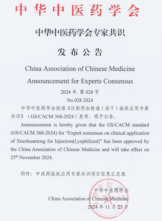 現(xiàn)已發(fā)布的《注射用血栓通(凍干)臨床應(yīng)用專(zhuān)家共識(shí)》將納入證據(jù)庫(kù),供中醫(yī)臨床診療指南編制時(shí)參考。