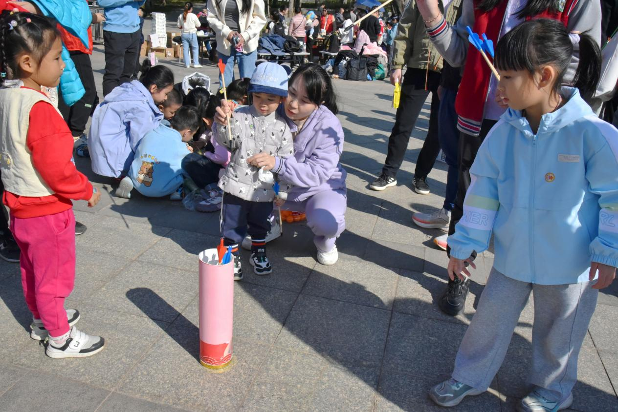 上午9時30分,活動正式拉開帷幕,一場場充滿趣味與溫情的親子游戲輪番上演。“珠行萬里”項(xiàng)目中,家長與孩子手持半圓槽拼接通道,小球滑落時共同默契重整,掌心相對間不僅傳遞著力量,更凝聚著親情;壺中“箭”寶環(huán)節(jié)融入傳統(tǒng)元素,家長們手把手帶領(lǐng)孩子瞄準(zhǔn)投擲,每一次成功入壺都引發(fā)全場歡呼;“筷子夾乒乓球”項(xiàng)目磨練耐心技巧,孩子們模仿家長動作小心翼翼夾球,有的家庭還創(chuàng)意發(fā)明“接力夾球”玩法,現(xiàn)場加油聲、歡呼聲交織成群。