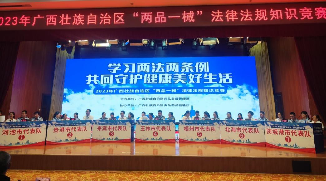 7月13日,由梧州制藥員工代表——質(zhì)量控制部呂金慧、質(zhì)量保證部李佳霖與梧州市場監(jiān)督管理局監(jiān)管人員組成的梧州市代表隊參加廣西壯族自治區(qū)“兩品一械”法律法規(guī)知識競賽,憑借過硬的專業(yè)知識、迅速