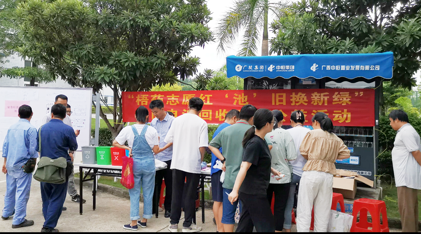梧州制藥聯(lián)合公司安委辦舉行的“梧藥志愿紅 ‘池’舊換新綠”廢舊電池回收環(huán)保公益活動