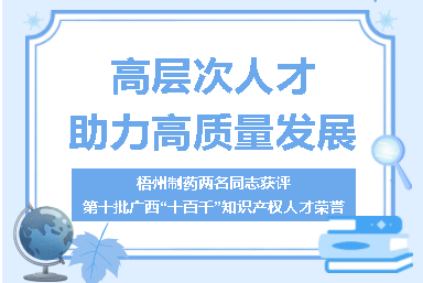 梧州制藥兩名同志獲評(píng)第十批廣西“十百千”知識(shí)產(chǎn)權(quán)人才榮譽(yù)高層次人才助力高質(zhì)量發(fā)展近日,自治區(qū)市場(chǎng)監(jiān)管局公布第十批廣西“十百千”知識(shí)產(chǎn)權(quán)人才名單,廣西梧州制藥(集團(tuán))股份有限公司副董事長(zhǎng)、總經(jīng)理劉洋同志獲“A